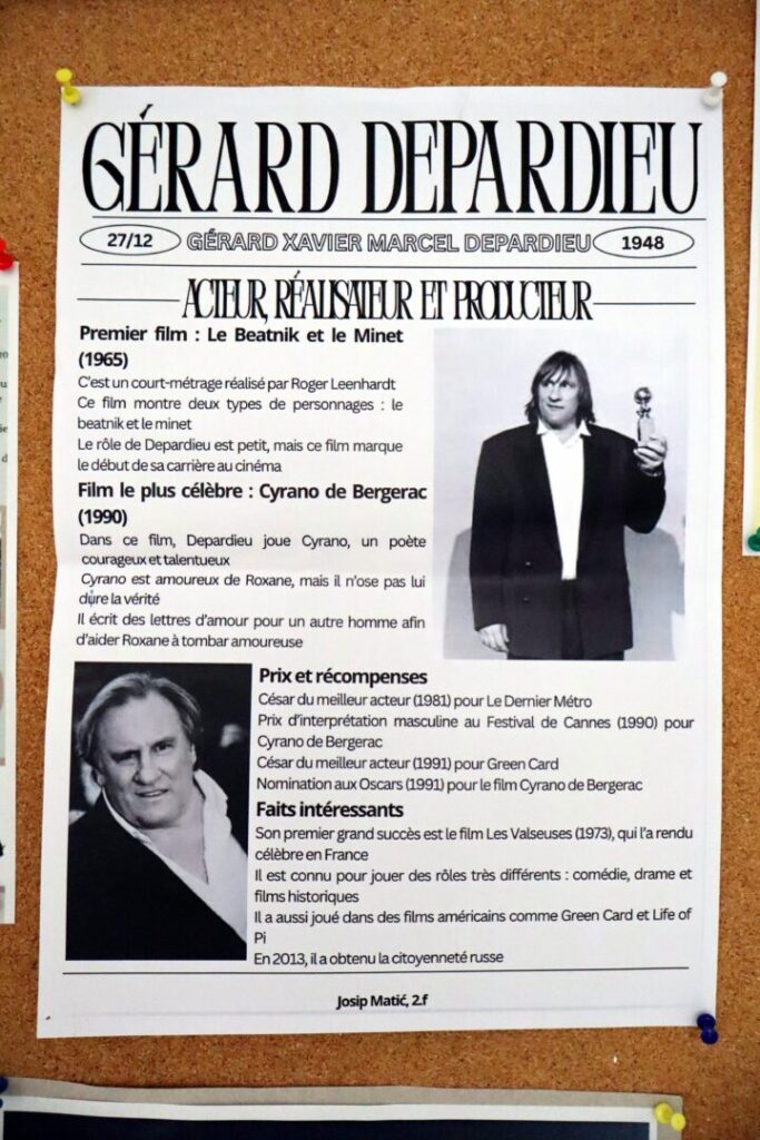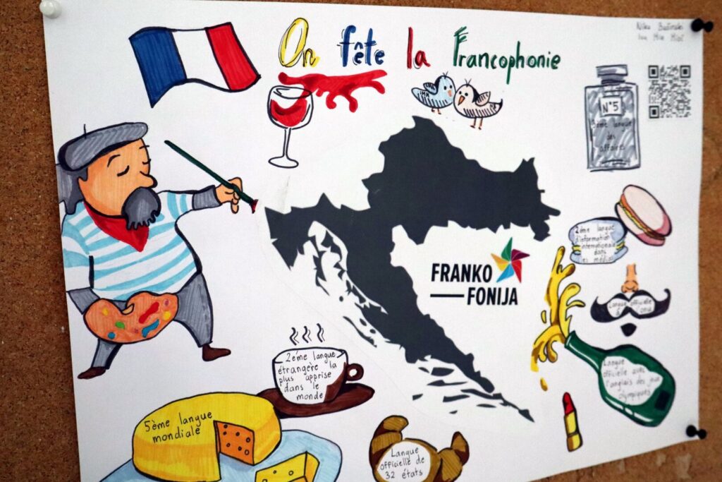I ove godine u našoj školi obilježili smo Dane frankofonije kroz niz zanimljivih i edukativnih aktivnosti. Učenici 1.d i 2.f razreda imali su priliku pogledati uvijek zabavan i poučan film Intouchables, koji ih je nasmijao, ali isto tako i potaknuo na razmišljanje o prijateljstvu, različitostima i životnim vrijednostima. Nakon gledanja filma, učenici su se upoznali s biografijama i glumačkim ostvarenjima nekih poznatih francuskih glumaca te su svoje spoznaje predstavili kroz kreativne plakate. Učenici prvog razreda ove su se godine prvi put susreli s pojmom frankofonije. Kroz zanimljive aktivnosti i kviz na tu temu upoznali su zemlje u kojima se govori francuski jezik, kao i bogatstvo njihove kulture, jezika i tradicije. Pokazali su velik interes i znatiželju te uspješno riješili zadatke. Obilježavanje Dana frankofonije bila je izvrsna prilika za proširivanje znanja, razvijanje međukulturne svijesti i poticanje interesa za učenje stranih jezika. Veselimo se novim iskustvima i već sada s nestrpljenjem iščekujemo sljedeći tjedan kada ćemo posjetiti frankofoni dio Švicarske i iz prve ruke upoznati njegovu kulturu i način života.