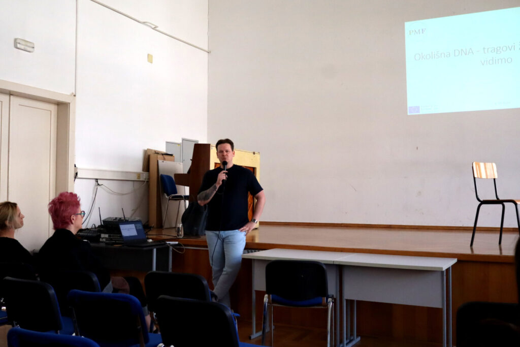 U nizu brojnih aktivnosti koje se provode u projektu “Bioinformatička avantura – računalno putovanje u genetiku”, u ponedjeljak 9.3.2026. održano je u Kapelici predavanje na temu “Okolišna DNA – tragovi života koje ne vidimo”. Predavanje je održao dr. sc. Matej Vucić s Prirodoslovno-matematičkog fakulteta u Zagrebu. U vrlo zanimljivom i interaktivnom predavanju učenici prvih, drugih, trećih i četvrtih razreda imali su priliku čuti zanimljivosti vezane uz okolišnu DNA.