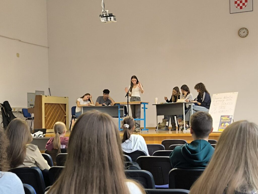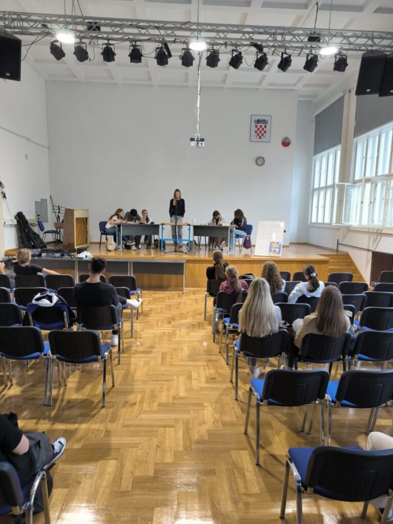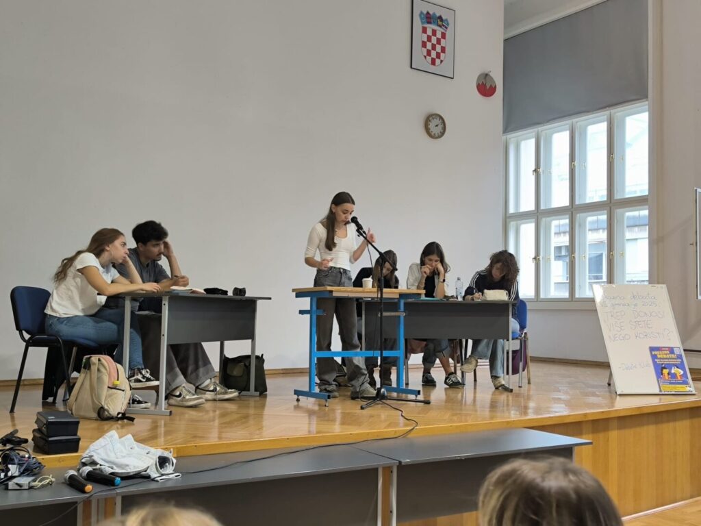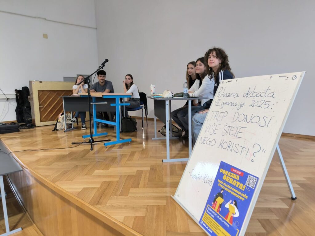 Prošli tjedan je u Kapelici održana prezentacijska debata Debatnog kluba VII. gimnazije u organizaciji profesorice Ane Šiljeg Gilja te voditeljica kluba Lucije Perica i naše bivše učenice Lote Petrinić. Debatanti Lana, Ena, Laura, Nela, Bruno i Ana Karla debatirali su na tezu „Trep glazba donosi više štete nego koristi“ te na taj način svim zainteresiranim učenicima uspješno pokazali što je to debata. Debata je izazvala interes i angažman učenika koji su aktivno sudjelovali te raspravljali o tezi, argumentima i stilu govornika.