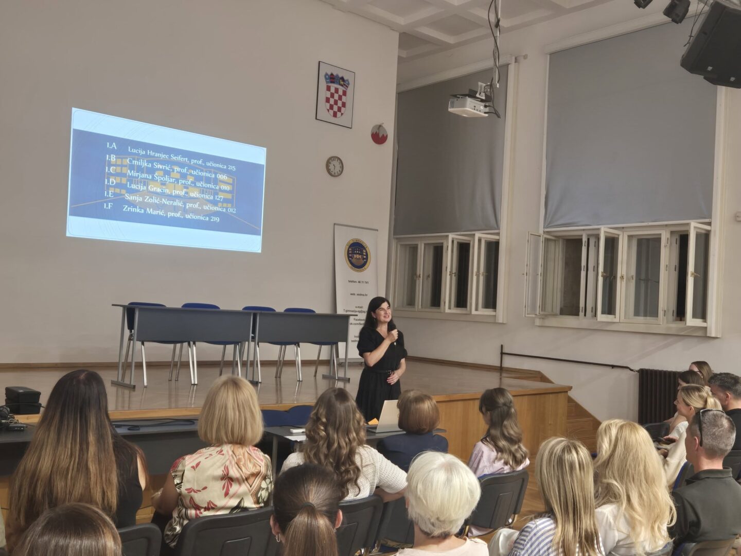 Prošli četvrtak se u dvorani Kapelici održao sastanak za roditelje učenika prvih razreda. Ravnateljica Ivka Nevistić predstavila im je školu i njen rad, a obratile su im se i pedagoginja te psihologinje koje su im uz najbitnije informacije pružile riječi potpore. Na kraju su se roditelji s predstavljenim razrednicama uputili u razrede. Poželjeli smo svima puno uspjeha!