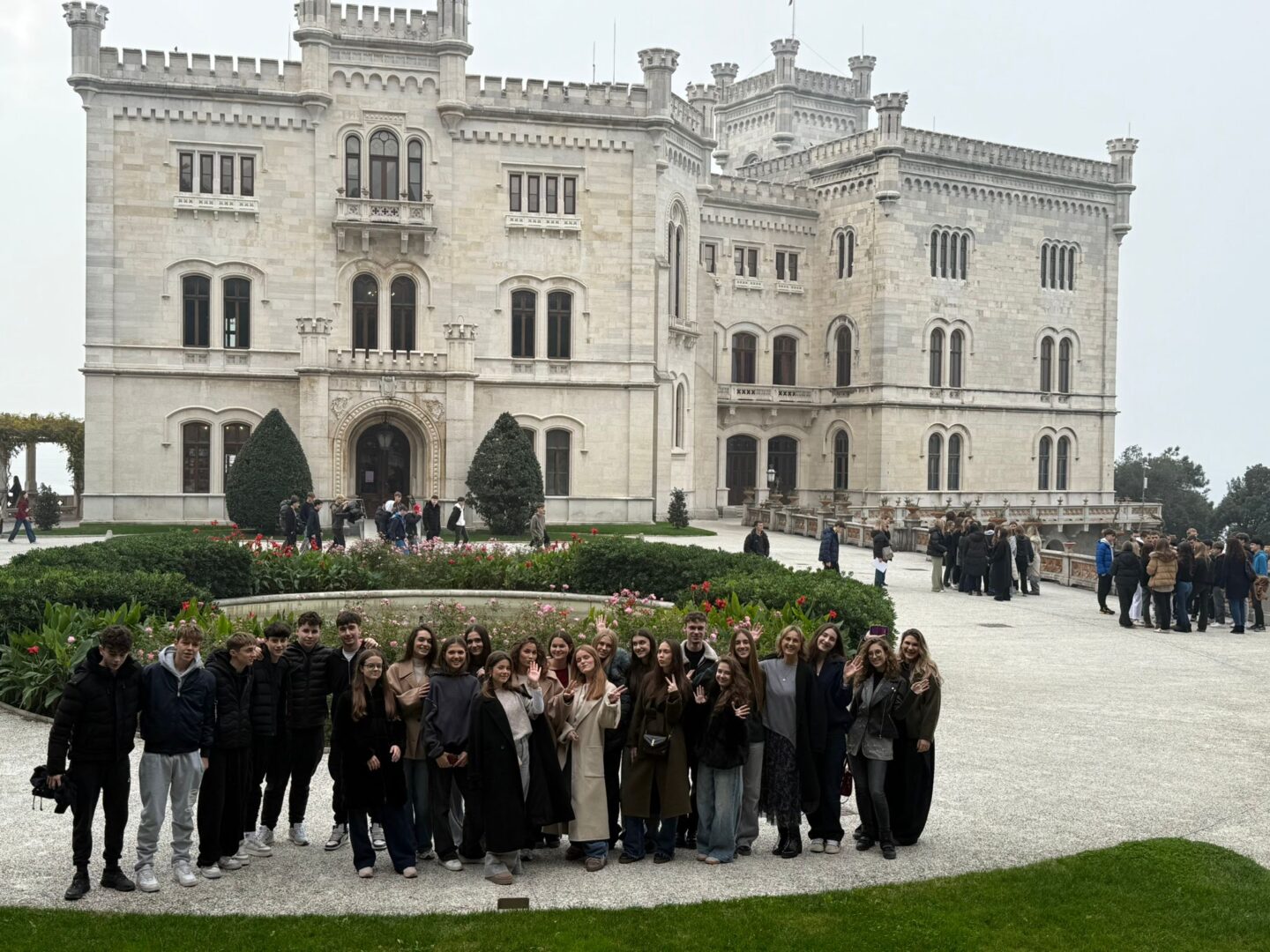 U petak 14. 11. 2.e i 2.f bili su na terenskoj nastavi u Italiji u pratnji svojih razrednica Dragane Ažić i Tee Bojko te u pratnji profesorica Cecilije Nekić i Katarine Kukolja. U regiji Friuli – Venezia – Giulia posjetili su dvorac Miramare koji je okružen dvorskim vrtovima, a u nastavku je uslijedio razgled Trsta. Posjetili smo jedan od najvećih trgova u Europi – Trg Ujedinjenja (Piazza della unita d’ Italia) na kojem se nalaze četiri veliki zgrade od kojih je najveća Palazzo del Municipio. U šetnji gradom vidjeli smo Verdijevo kazalište, Veliki kanal, Rimsko kazalište. Nakon razgleda Trsta učenici su imali slobodno vrijeme i mogli su uživati u talijanskoj hrani te ostalim znamenitostima grada.