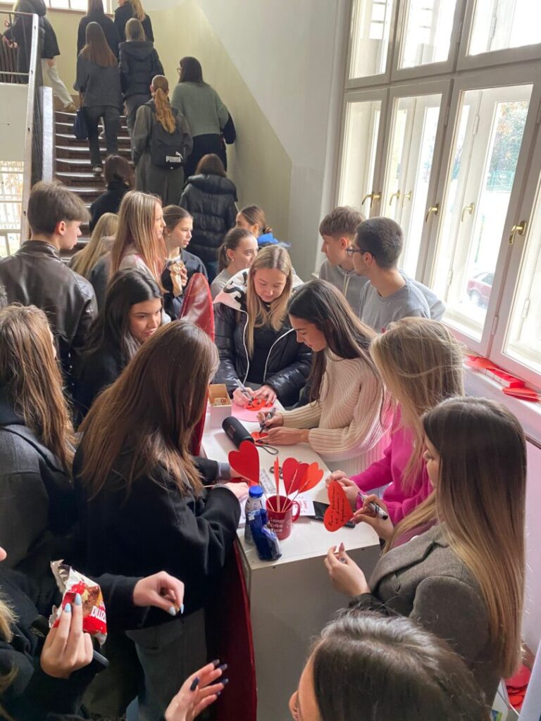 Proslavili smo Valentinovo i ove godine s velikim srcem! Izradili smo i prodali brojna srčeka pa su ljubavne i prijateljske poruke putovale našim učionicama, a sav sakupljeni iznos, kao i svake godine, darovali smo udruzi “Veliko srce malom srcu”. Uz ljubavnu poruku, tako dolazi i radost zbog učinjenog dobrog djela. Srca ispunjena – i velika i mala!